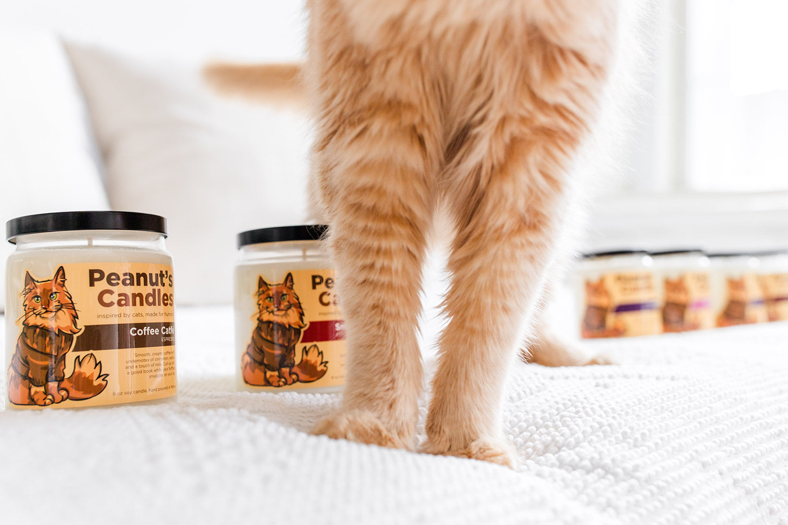 In honor of our late, great Peanut, we’ve sparked up this line of candles, with a little help from his eight adopted fur-siblings. After mingling with thousands of cats in the world of animal rescue, I wanted to bottle up the riotous laughter and snugly love they bring into our lives.